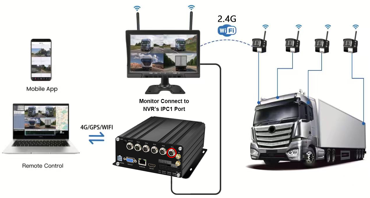 Papildomi 3 CH laidiniai IP kameros įėjimaiCarleader 10,1 colio 7CH Wireless HDD Mobile NVR sistema, pažangiausia mobilioji belaidė NVR sistema, skirta automobilių parkui valdyti. Sistema naudoja 4 vnt belaides IP kameras, suporuotas su 10,1 colio belaidžiu relės monitoriumi per 2,4 GHz signalą, tada prijunkite relės monitorių ir NVR IPC prievadą per 6PIN aviacijos jungtį, taip pat palaiko papildomus 3CH laidinius IP kameros įėjimus.