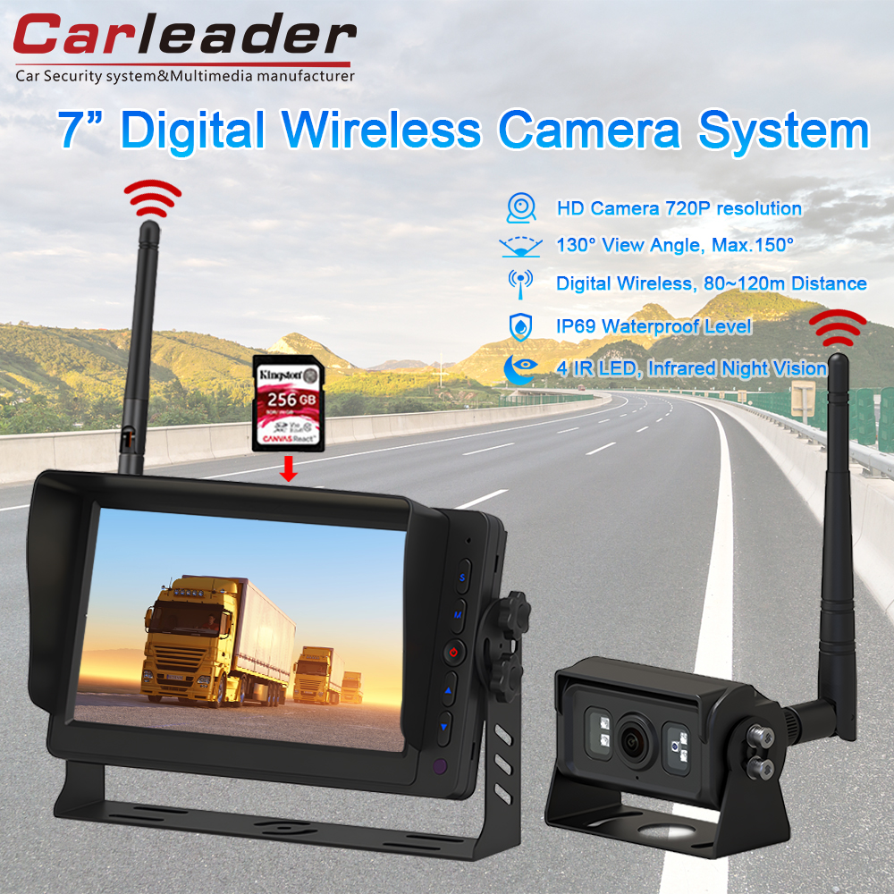Carleader7 colių DVR įrašymas 2,4 GHz skaitmeninės belaidžio ryšio stebėjimo sistemayra pažangiausiasBelaidis monitorius ir fotoaparatų sistemaSkirta komercinėms transporto priemonėms, įskaitant autobusus, sunkvežimius, priekabas ir kranus. Derinant didelės skiriamosios gebos vaizdus, tvirtą patvarumą ir universalų ryšį, ši sistema užtikrina padidėjusį saugumą ir matomumą reiklioje aplinkoje.