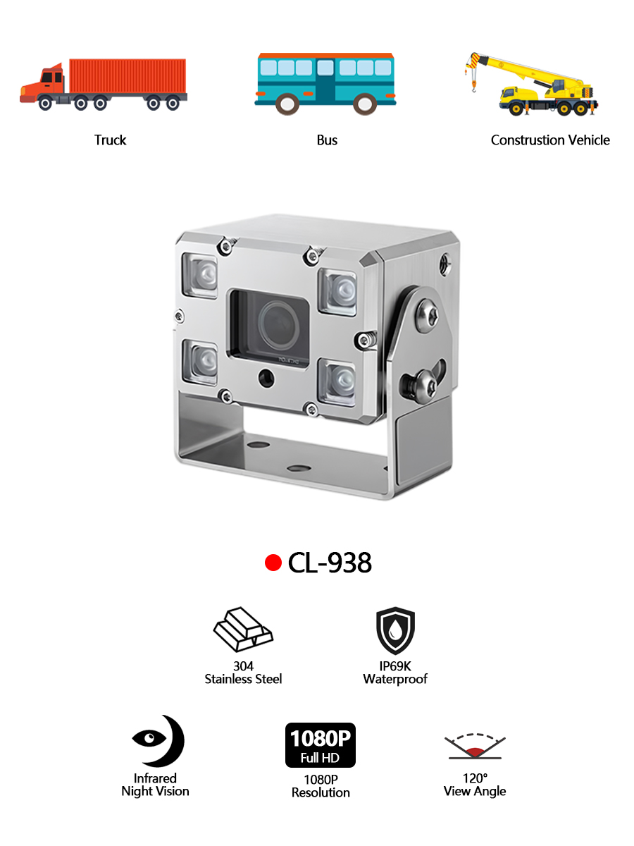 Carleader304 Nerūdijančio plieno sunkioji kamera, tvirtas, aukštos kokybės užpakalinis vaizdasAHD kameraPastatytas užtikrinti patikimą stebėjimą reikalaujančioje pramoninėje ir atšiaurioje aplinkoje. Pagaminta su „Premium 304“ nerūdijančiu plienu, sujungia išskirtinį ilgaamžiškumą su pažangiomis vaizdo gavimo technologijomis, užtikrinant vairavimo saugos ir aiškumo patirtį.