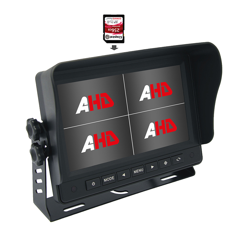 „Quad AHD“ monitoriai: Mūsų „Quad AHD“ monitoriai perkelia transporto priemonės saugumą į kitą lygį. Šioms sistemoms, galinčioms vienu metu rodyti ir įrašyti keturis vaizdo sklaidas, pateikiamos visas erdvės vaizdas. Naudodami daugiapakopius rodymo režimus ir nepriklausomą failų archyvavimą, vairuotojai gali lengvai stebėti savo transporto priemonės užpakalinę / priekinę / pusę / pusę.