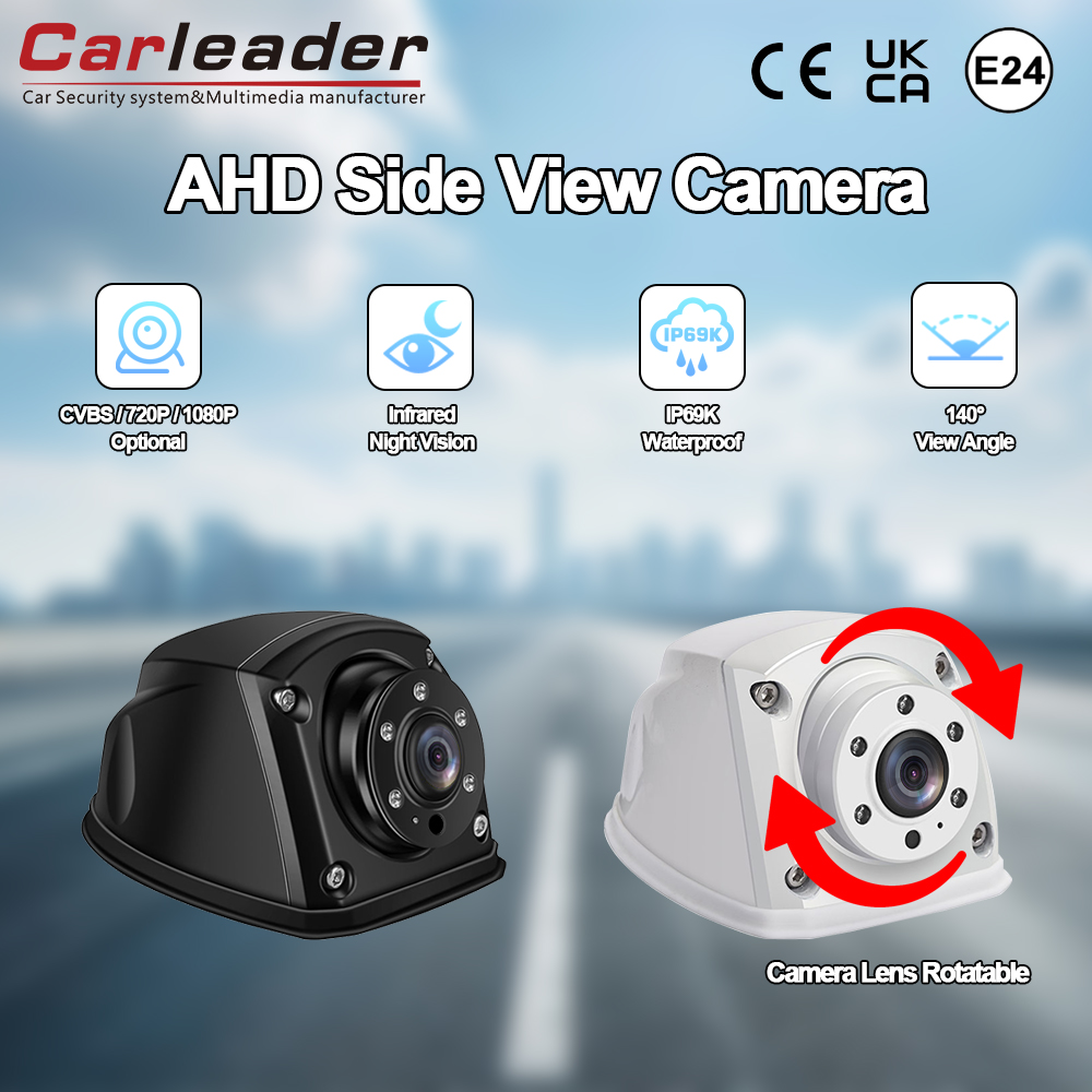 CarleaderAHD 5 IR LED transporto priemonės šoninio vaizdo kameraTinkaSunkiasvorėms transporto priemonėmssunkvežimiai, priekabos, autobusai ir sunkvežimiai. AHD 1080P atsarginė kamera pritaikyta Analog High Definition (AHD) technologijai ir 1920*1080 didelei skyrai, kad būtų užtikrintas aiškus vaizdas. Sunkvežimių parko vadovai daugiausia dėmesio skyrė automobilių saugos produktams, ypač komercinių transporto priemonių kamerų aptikimo sistemoms. Automobilių parko valdytojai domėjosi techninėmis specifikacijomis, rinkos pritaikymu ir atitikimu reikalavimams.